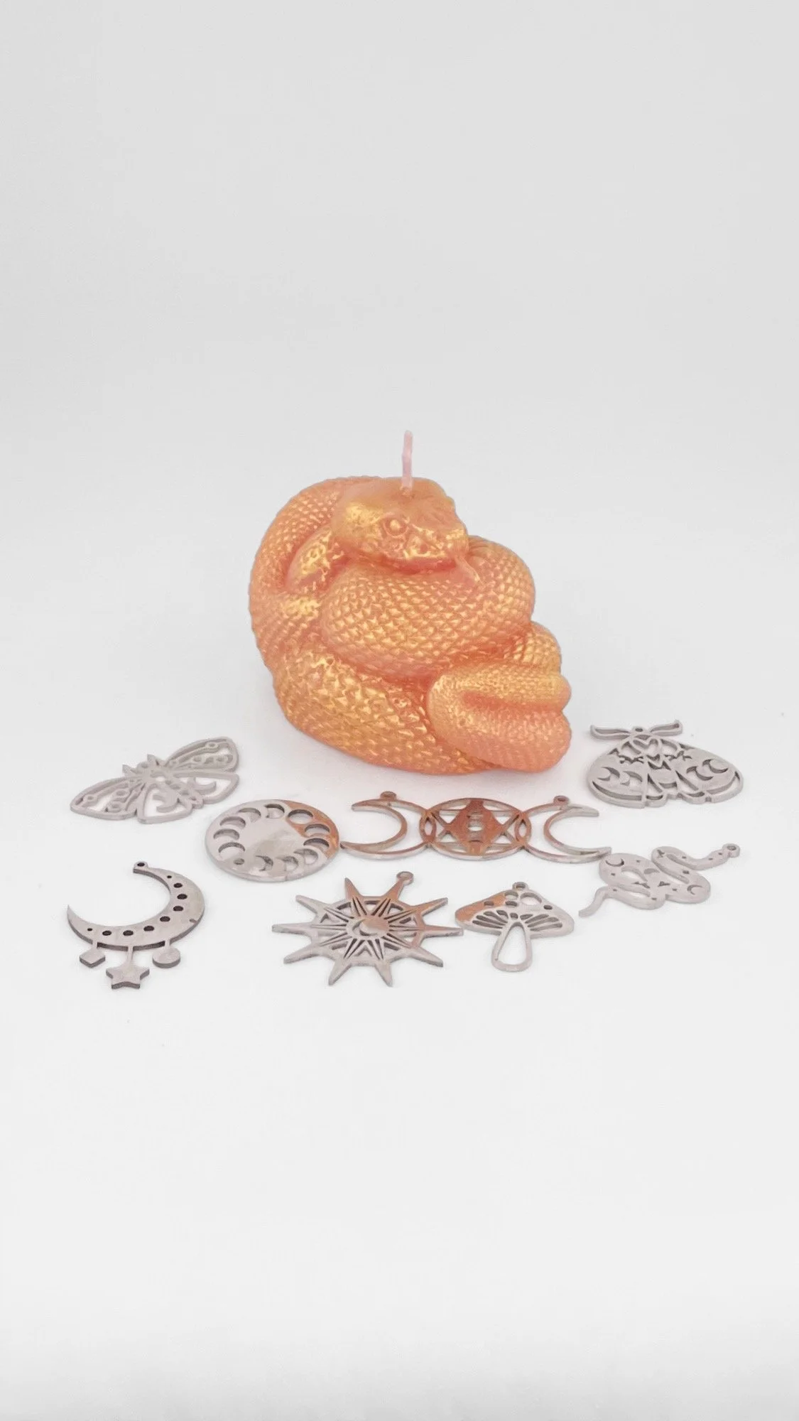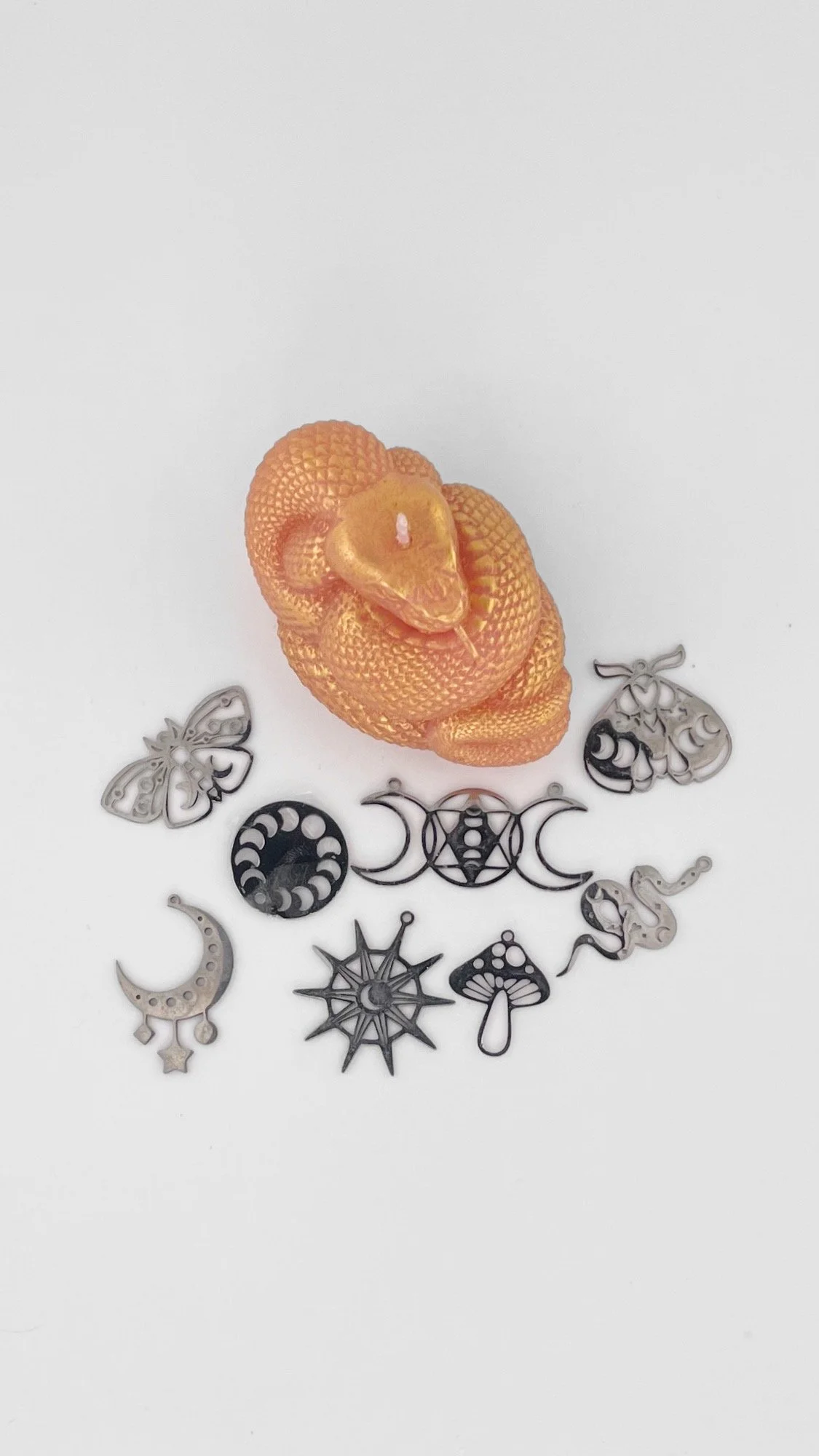 CHARMED Charmed Candles hide mystery charms that are revealed when burned. Tarot Cat $23.00 Black Red Orange Add To Cart Added! Wisdom Tooth from $23.00 Select Color White White/Gold Add To Cart Added! Snake Charmer $23.00 Gold/Pink Green Add To Cart Added! Oracle Candles $21.00 Add To Cart Added!